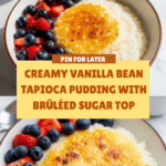 Vanilla Bean Tapioca Pudding with a Brûléed Top is a classic dessert with a delightful twist. Creamy tapioca pearls infused with fragrant vanilla bean paste are topped with a crisp caramelized sugar layer and served alongside fresh macerated berries. It’s a comforting treat perfect for any occasion.