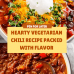 This hearty vegetarian chili is packed with beans, vegetables, and warming spices, making it a perfect comfort meal any time of the year. It’s easy to prepare, flavorful, and satisfying for both vegetarians and meat-eaters alike.