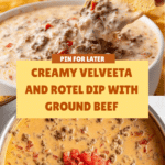 Keywords: Velveeta dip, Rotel dip, cheesy dip, party appetizer, ground beef dip, game day recipe, easy dip