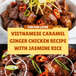 Vietnamese Caramel Ginger Chicken is a vibrant and flavorful dish that balances sweet, savory, and spicy notes perfectly. Tender chicken thighs are coated in a rich caramel glaze infused with ginger and aromatics, making it an irresistible meal for any occasion.